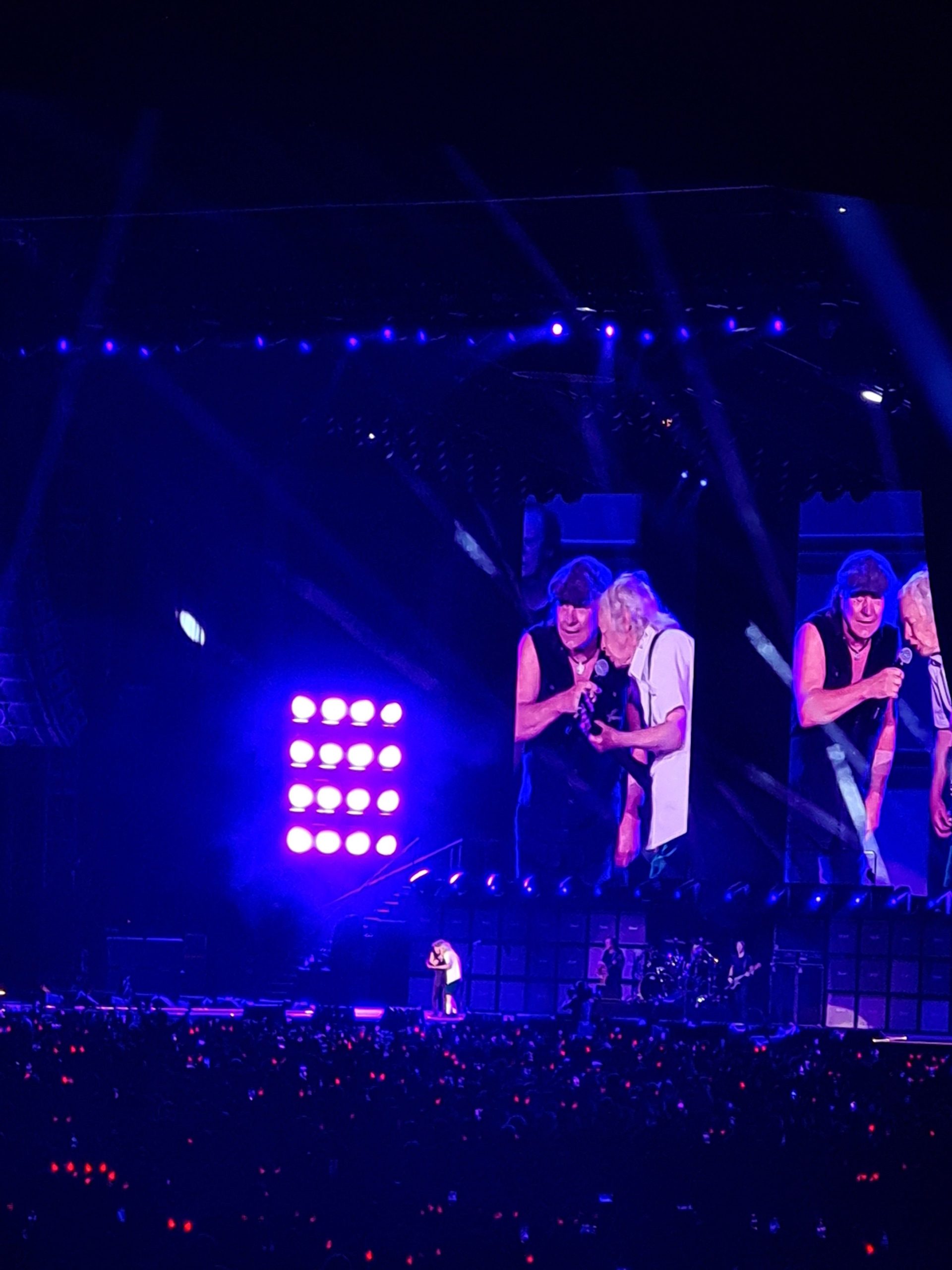 O show foi uma verdadeira aula de rock. Quando começaram os acordes de “Back in Black”, o estádio inteiro cantou junto. Em “Thunderstruck”, mais de 60 mil pessoas acompanharam o riff inicial como se fosse um hino, foi emocionate. “Stiff Upper Lip”, “Hells Bells”, foi clássico atrás de clássico. E quando “Highway to Hell” surgiu no set, foi impossível não pular e cantar com os braços erguidos. Na seguência várias pedradas, que mal davam tempo aos fãs respirarem: “Shoot to Thrill”, “Sin City”, “Jailbreak”, “Dirty Deeds Done Dirt Cheap”, “High Voltage”, “Riff Raff”, “You Shook Me All Night Long”, “Whole Lotta Rosie”…