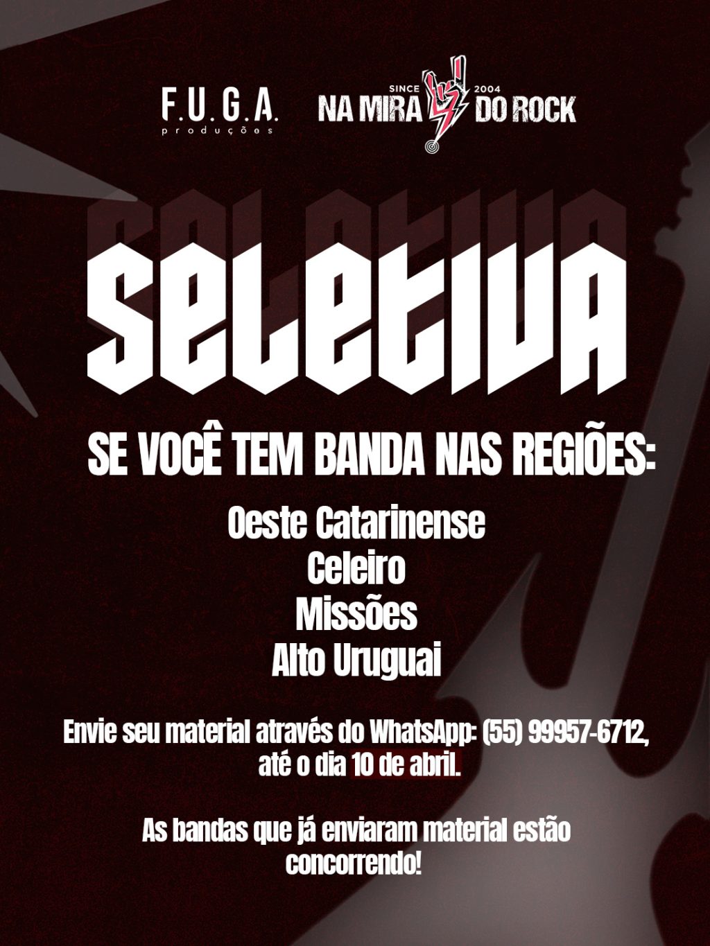 As 4 bandas selecionadas pela nossa curadoria, além de dividirem o palco com a Garage Inc. no dia 16/05, vão disputar uma vaga exclusiva para um grande evento em outra cidade no mês de agosto!